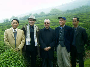 編者按:作者王火(1924-):(圖片中者) 為中 國 作協名譽委員、四川省作協名譽副主席。安徽農墾集團60 0余 萬字,代表作《戰爭和人》三部曲曾獲第二屆國家 圖書 獎、第四屆茅盾文學獎、炎黃杯人民文學獎及“八 五” 期間優秀長篇小說獎。2003年4月上旬,安徽 省文 聯與安徽省敬亭山茶場舉辦首屆“敬亭綠雪”筆 會,研 討茶文化,游覽宣城敬亭山,賞景品茗,又去塋山 考 察。作家王火在茶場即興寫下了“敬亭綠雪”記, 特予 刊載。圖片左一為省文聯書記處書記、著名書法家 吳 雪,左二為省文聯名譽主席、著名作家魯彥周,右 二為 著名作家、原中國作協副主席、黨組書記鄧友梅, 右一 為敬亭山茶場場長林啟仁。他們興致勃勃地在敬亭 山茶 場茶園合影留念。