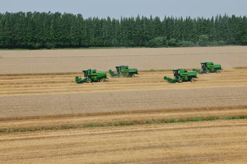 當前“三夏”生產進入高潮,全國小麥機收正由南向北快速推進。為確保糧食顆粒歸倉,日前,安徽農墾搶收保種,全系統已投入大型聯合收割機械、拖拉機等農機具5000臺套。圖為壽西湖農場農機會戰現場。(經濟日報