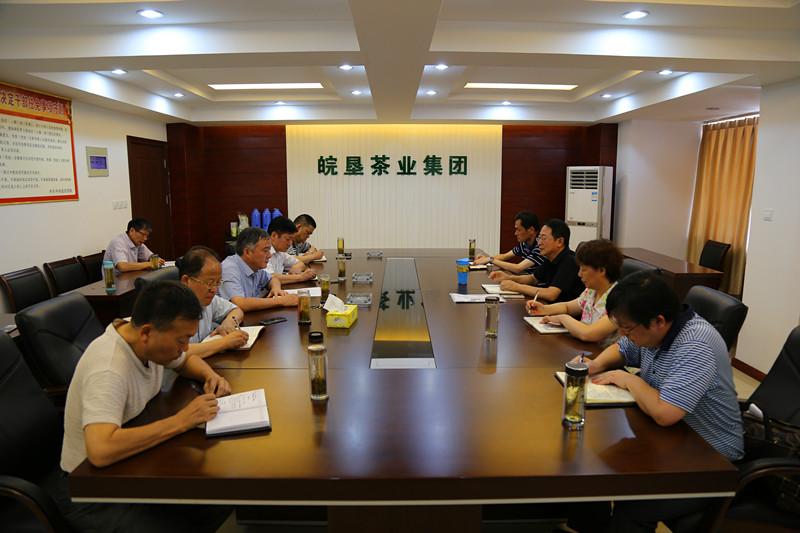 7月26,安徽農墾集團總經理劉超、總會計師高有榮赴皖墾茶業集團調研。集團辦公室主任孫良倉、財務部部長陳軍和皖墾茶業領導張國祥、劉盛旭、李雙陸、曹新界、宗志貴參加調研座談。
