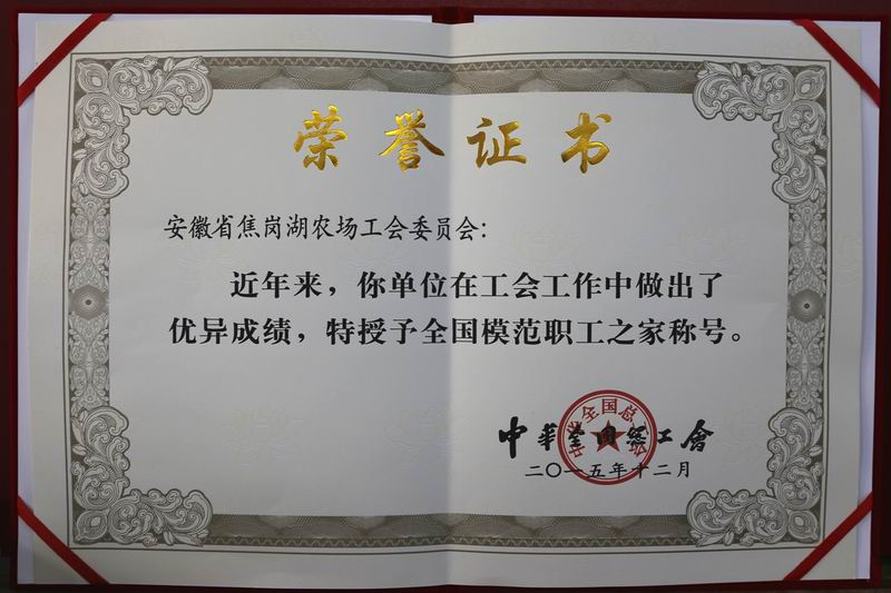 近年來,安徽農墾焦崗湖農場在工會工作中做出了優異成績,在中華全國總工會近期開展的基層模范組織評選中,榮獲“全國模范職工之家”稱號。(劉慧君)