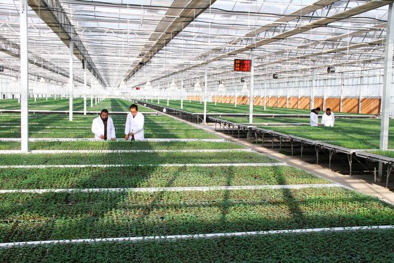 安徽農墾龍亢農場應用農業物聯網技術,建設了5000平方米智能溫室大棚,內設4500平方米可移動苗床,用于培育特種瓜果蔬菜苗,每年可提供果蔬苗600萬株。圖為農技人員在為幼苗做春季“體檢”。(農民日報 2016年3月15日08版,李峰攝)