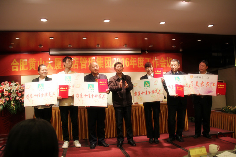 會議還表彰獎勵了金牌員工和優秀員工。4位子公司管理代表作了經驗交流分享。酒店集團與各子公司簽訂了《2016年目標承諾書》,力促全年經營管理目標的實現。