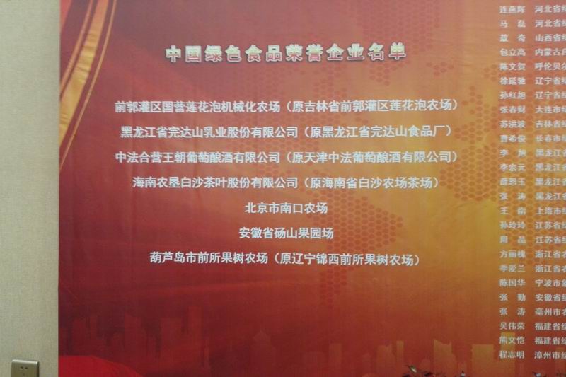 碭山果園場上榜中國綠色食品榮譽企業