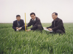 龍亢農場全力實施人才強場戰略,依靠事業聚人,待 遇引人,政策留人,環境造就人,目前在農場工作的 168名高校畢業生,有49人擔任農場場長、部長、經 理等重要領導崗位,有98人從事專業技術工作。圖 為高級農藝師許化武(右)帶領兩名農業本科生在 研究小區小麥品種長勢。