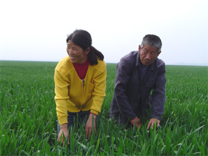 安徽農墾龍亢農場全力實施“改革活農、科技興 農、良種富農、項目穩農、產業帶農”的五大工 程,提高了農業的抗災能力和糧食發展水平。圖為 農業一分場家庭農場主李天合于女兒一道在承包的 120畝麥種田里實施人工去雜,確保良種純度。