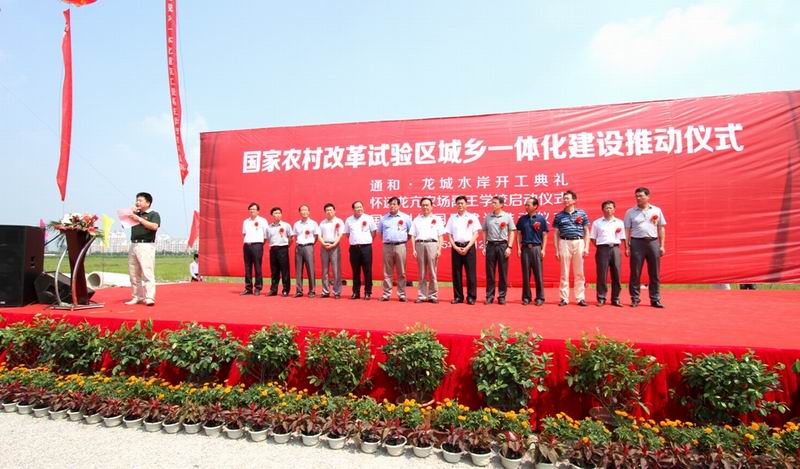 試驗區三大重點項目在本次活動中“燃爆”,即,通和·龍城水岸房地產項目開工典禮、懷遠龍亢農場禹王學校啟動和國家級科技園區項目提檔升級。其中,通和·龍城水岸項目作為試驗區城鄉一體化的重點工程,開發建筑總面積近20萬平米,建設住宅1500多套、商用房2.