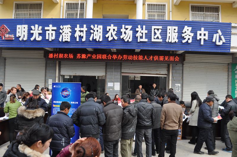 據蘇滁產業園負責人介紹,由于園區企業發展速度快,用工需求量激增,急需一支能吃苦耐勞、有一定技能的勞動大軍。見面會當天,駐園九牧人衛浴、三友電子等8家大中型企業來農場社區服務中心設柜招聘,農場職工、社區居民及周邊鄉鎮村民500多人趕來應聘,現場人頭攢動、氣氛熱烈。通過洽談和雙向選擇,一批職工居民與園區企業達成了就業意向。