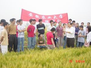 連日來,省農墾方邱湖農場今夏長勢喜人的小麥, 不僅吸引了周邊縣市200多名種子銷售商和農戶前來 觀摩,還吸引了安農大的學生出組織起來前往觀摩 學習。(邱緒恒 常江安 攝)