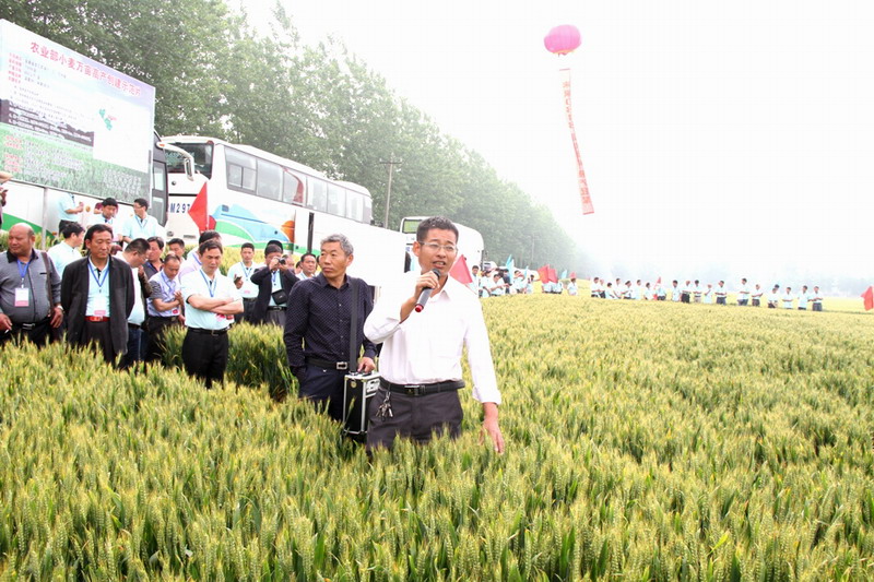 5月18日,黃淮地區各省市縣農業科研院校的小麥專家、農業部門負責人、種子經銷商、種植大戶等360余人云集安徽農墾龍亢農場,現場觀摩小麥良種生產。副場長王永玖向各地來賓介紹了農場小麥新品種特性和高產栽培技術模式。(李峰)