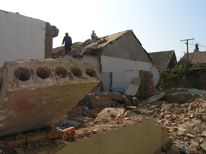 圖片說明:潘村湖農場移民建鎮工程二、三號樓已 進入掃尾階段,四、五號樓擬于今年底開工建設。 圖為工程位置所在地的原有居民正按照場統一部署 著手房屋拆遷工作。(楊登宏)