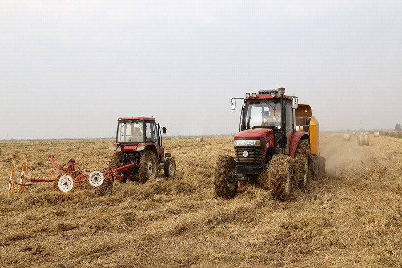 能否用市場化辦法來破局?場長孫國安深入場內各農機合作社尋計問策。農場精五合作社聯系到安徽省規模最大的農機合作社——含山縣乾地源合作社,對方調來20多臺國產沃德奧龍1104打捆機、摟草機、叉草機,助力農場稻秸禁燒。據乾地源合作社負責人白江介紹,如果天氣晴好,3-4天就可完成農場3萬畝水稻的秸稈打捆回收作業。