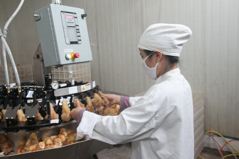 斷喙器又名切嘴機、切嘴器。此次引進的紅外線段喙器,目前全國僅有少數較大家禽企業運用。紅外線斷喙在孵化廳進行,與性別鑒定和免疫注射同步完成,通過精確微調,每小時可處理3500-4000只苗雞,自動化率達100%,避免了員工與苗雞的接觸,確保了生物安全性,使之成為安禽公司實現飼養全程自動化控制后又一新亮點,“安禽”牌苗雞步入了全國同行業一線品牌,將帶動農場蛋雞產業鏈進入更加良性的可持續發展模式。