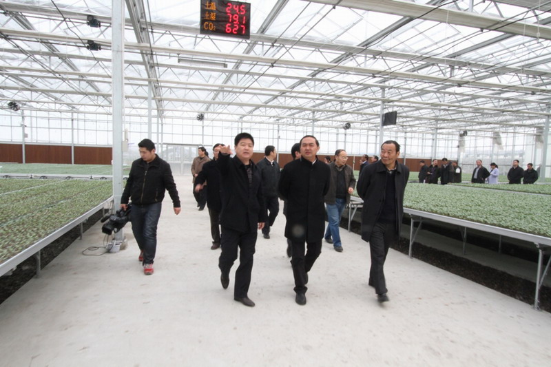 調研中,李卓民向孫正東一行介紹了農墾集團聯手天禾集團打造安徽農業服務集團的運作、農墾現代農業信息化建設,以及帶動全省農業生產發揮的重要作用。龍亢農場匯報了現代農業建設、農業全程社會化服務試點、農業物聯網系統建設與應用管理等工作。孫正東、李卓民一行到龍亢農場農業社會化服務中心,觀看了農業全程社會化服務模式介紹短片,并通過語音查詢系統即時查看了安徽各地農業生產信息;到農業物聯網應用指揮中心,聽取了物聯網功能應用的介紹和演示;到智能溫室大棚,察看了育秧西瓜苗長勢情況。
