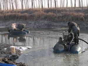 說明:潘村湖農場冬修戰役于日前拉開序幕。為提 高農業抗災減災能力,增強農業發展后勁,潘村湖 農場認真貫徹落實集團公司水利會議精神,因地制 宜做好冬季水利興修工作,確保各項工程按期按質 完成。圖為大型吸漿機在蘇義干溝施行清淤作業。 (楊登宏攝)