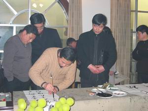 新年伊始,省炳燭詩書畫協會第二分會書畫家們在會 長張銀河(原壽縣人大主任)帶領下,冒著刺骨寒風, 于元月6日來到壽西湖農場,現場揮筆作畫,慰問壽 西湖農場廣大職工。張會長深情地說:“省屬壽西 湖農場多年來與地方政府關系良好,融入地方經 濟,為壽縣的經濟發展建設做出了應有的貢獻,值 此新年來臨之際,我們組織部分書畫家深入農場, 開展書畫慰問活動,謳歌農場經濟建設取得的成 就,表達對農場明天的美好祝愿!”