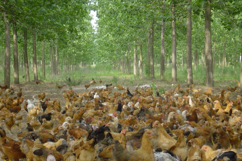 大壙圩農場有近2000畝集中成片的林地和豐富的農副產品資源,養殖條件得天獨厚。2007年,在農場大力引導鼓勵下,富有經營頭腦的吳延正勇當林地養殖“先行者”。他在緊臨高郵湖邊的農場三隊圍網20余公頃,興辦起“吳老大”林地養殖場。寒來暑往,幾年來,他和愛人以林地為家,風餐宿露,吃盡辛苦,全身心撲在養殖上,但第一年養雞虧損了數萬元,第二年才剛保本。天道酬勤,第三年盈利了6萬余元,到今年第四年終于賺了“大錢”。