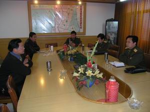 說明:由明光市委常委、市人武部部長李正國(右 一)帶隊的檢查組于元月18日在潘村湖農場檢查指 導基層武裝工作。場有關部門的負責同志就黨管武 裝、民兵規范化建設、率兵參建、征兵等項工作作 了匯報。檢查組對農場近年來武裝工作給予了充分 肯定,并就進一步加強國企武裝工作與場主管同志 進行了交流和探討。