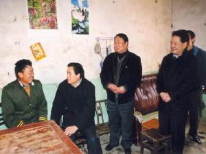 春節前夕,省政府副省長趙樹叢(左二)在農墾集團公 司黨委書記丁俊先(右一)、宣郎廣茶業總公司經理 孫國安(左三)陪同下,到省農墾宣郎廣茶業總公 司陳先武家慰問。