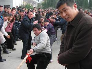 該場組織了文藝宣傳隊參加了“沿淮五場保持共產 黨員先進性文藝匯演”,又組織開展了藍球、乒乓 球、拔河等比賽活動。場黨委在“先教”活動中組 織開展多項活動,寓意深刻。尤其是開展拔河比賽 具有良好的群眾基礎,時間長、覆蓋面大,是傳統 的文娛活動。首先要求各黨支部組織選拔賽,挑選 10人參加分片比賽,共設四個賽區。最后取前8名到 場部賽場參加決賽,引來了無數職工群眾觀戰。廣 大職工不分男女老少都為自己的隊伍吶喊助威,場 面十分感人。大家都為場里組織這樣活動拍手稱 好。場長、黨委書記劉國強、副書記林慶年、壽縣 “先教”第一督導組副組長汪正群及壽縣體育局負 責人等參加了整個活動。