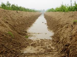 該場今年計劃挖排水溝160.6km,完成土方 80300m3,實際需要完成13.4萬m3,全場共清理違規 栽植影響溝渠暢通的果樹、楊樹2000余株,規劃路 涵82個,排水涵道240m,目前已全部完工。+(辦公 室)