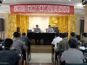為了加強全省農墾水利基本建設管理,4月27-29日 集團公司農水處,邀請省水利廳、淮委的水利專家 教授對農墾系統農水基本管理的工作人員進行一次 集中培訓,全系統各農場農水建設管理部門的負責 同志和技術人員參加培訓。圖為培訓授課會場。