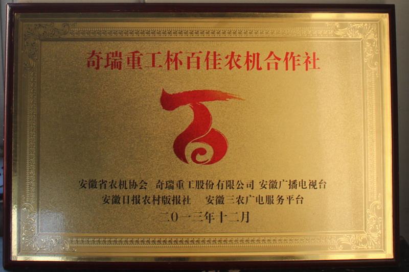 作為全省規模最大、水平最高的一次農機百佳合作社評選,旨在進一步提高安徽農機合作社職業化水平,加強農機合作社與農機企業的“社企共建”,實現優勢互補、互利共贏、共同發展。據悉,此次入選百佳的合作社將在2014年獲得由奇瑞重工提供的優惠購機、金融服務,以及合作社經營管理和專業技術培訓,扶持新型經營主體發展壯大。正農農機合作社此次參評入選,將示范帶動墾區農業機械化和農機專業合作社又好又快發展。