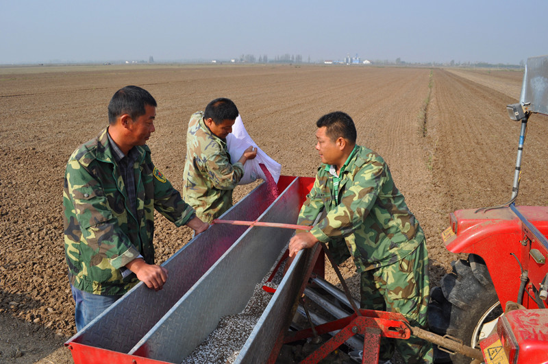 10月12日,在安徽農墾潘村湖農場二分場秋種現場,農技人員正在指導職工家庭農場進行精量播種和配方施肥。眼下正值沿淮麥區冬小麥最佳播期,連日來,該農場組織10多支農技小分隊深入田間地頭,面對面指導職工按照小麥高產栽培技術規程開展秋種,確保全場新一輪3萬畝大田小麥高產攻關各項增產技術措施落到實處。(楊登宏)