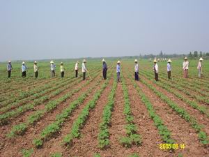 今年,華陽河農場棉花生產開局良好,形勢喜人, 目前已進入棉花田管的關鍵時期。圖為該場職工請 農工鋤草的情景。