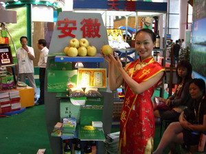 在博覽會期間,該場發放宣傳資料200余份,并利 用一切機會,向中外客商介紹、推介翡翠牌碭山 梨,讓他們品嘗我們的產品,通過品嘗,反映良 好,對我們的產品給予了極高的評價。通過博覽會 這個平臺,我們有機會與東盟國家客商接觸,使他 們對翡翠牌碭山梨有一個全面的認識和了解,同時 通過品嘗,使他們對我們的梨子有一個正確的評 價,達到了預期的目的。