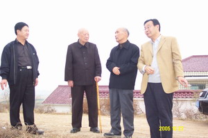 下午,領導們略加休息,便在場長唐邦水等領導的 陪同下,到五場、二場實地察看了農業生產情況。 領導們每到一處都要仔細地詢問農場經濟發展、棉 花良種建設、農場改革以及水利工程建設等情況, 特別關心農場職工的居住條件、收入多少,飲食情 況等。回到總場,朱副主席雖然90高齡,但興致不 減。他們又看了農場的小城鎮建設情況,并在農場 機關大樓前合影留念。